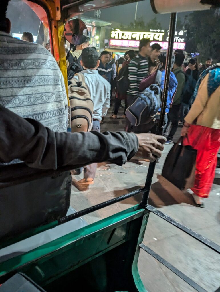 はじめにUberを呼んだ場所で再びUberTaxiを呼ぼうと試みるが、マッチングしません。たくさんのオートリキシャの運転手が声をかけてきました。相場50ルピーのところ、200ルピーのオートリキシャに乗リました。時間はすでに22時だった。ニューデリー駅で3時間もうろつくなんておかしい。500ルピーでもいいから乗れば良かったのです。